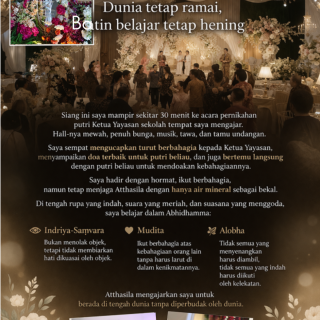 🌿 Hari 7 Aṭṭhasīla: Berlatih di Tengah Suara, Memahami Batin dengan Abhidhamma Hari ketujuh Aṭṭhasīla. Hari ini memberikan pembelajaran yang...